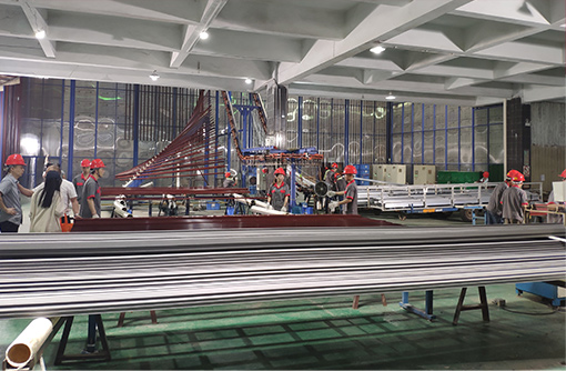 公司主要生產(chǎn)設(shè)備包含鋁型材擠壓生產(chǎn)線10套,立式粉末噴涂線2套,臥式粉末噴涂生產(chǎn)線1套,臥式氧化電泳生產(chǎn)線1套,真空木紋生產(chǎn)線4套,及相關(guān)配套生產(chǎn)設(shè)備10多套,其中進(jìn)口先進(jìn)設(shè)備2套,國(guó)內(nèi)技術(shù)領(lǐng)先設(shè)備20多套,年生產(chǎn)各型鋁材可超5萬(wàn)噸...